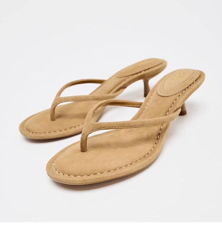 Summer Round Toe High Heel Flip-flops Flip-toe Mid Heel Sandals