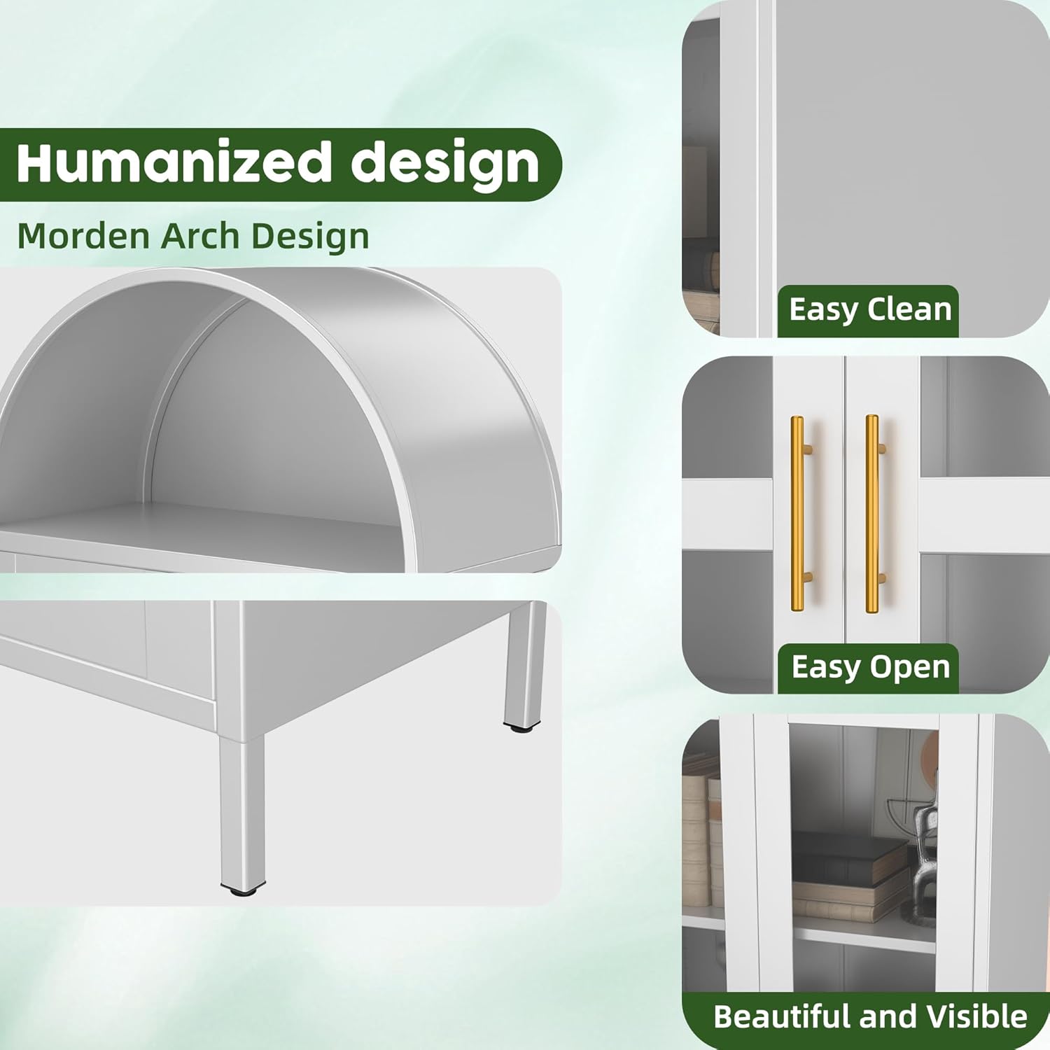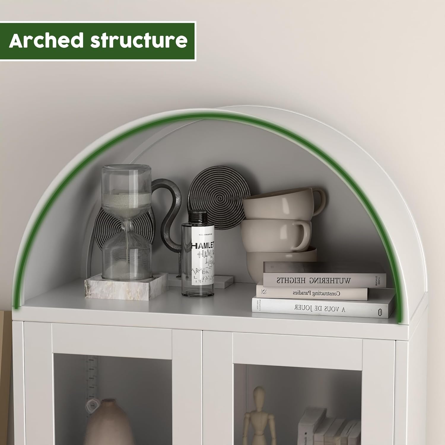 [The metal arch cabinet is versatile] It was designed not only for storing dishes, but also to stylishly display ceramic accessories. Perfectly suited for living rooms, kitchens or other spaces - this elegant display case will enhance your decor while providing practical storage solutions.